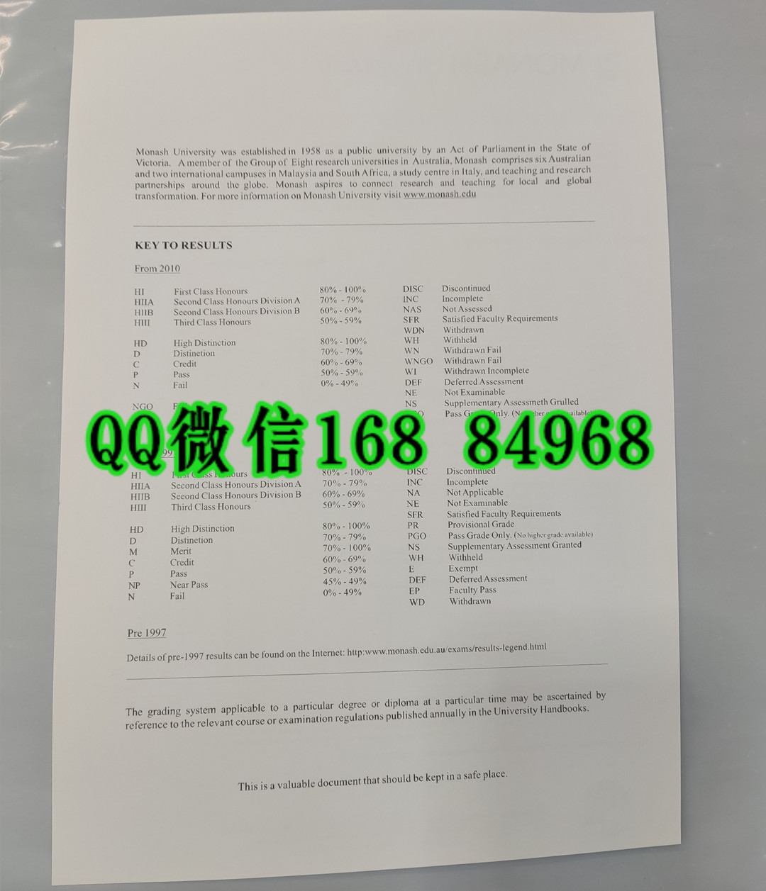 澳洲莫纳什大学成绩单印刷,Monash University transcript