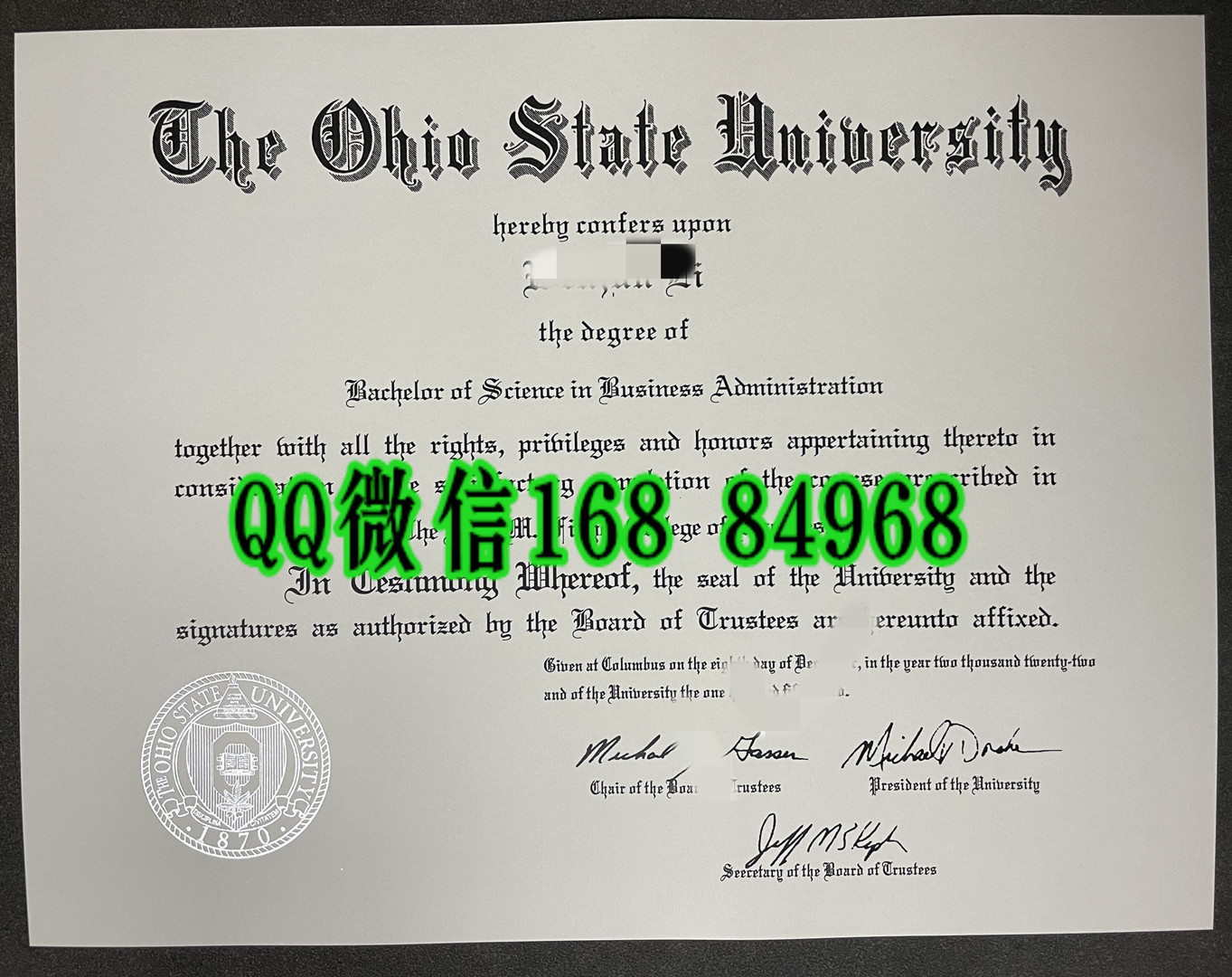 美国俄亥俄州立大学毕业证成绩单留才认证,The Ohio State University diploma degree
