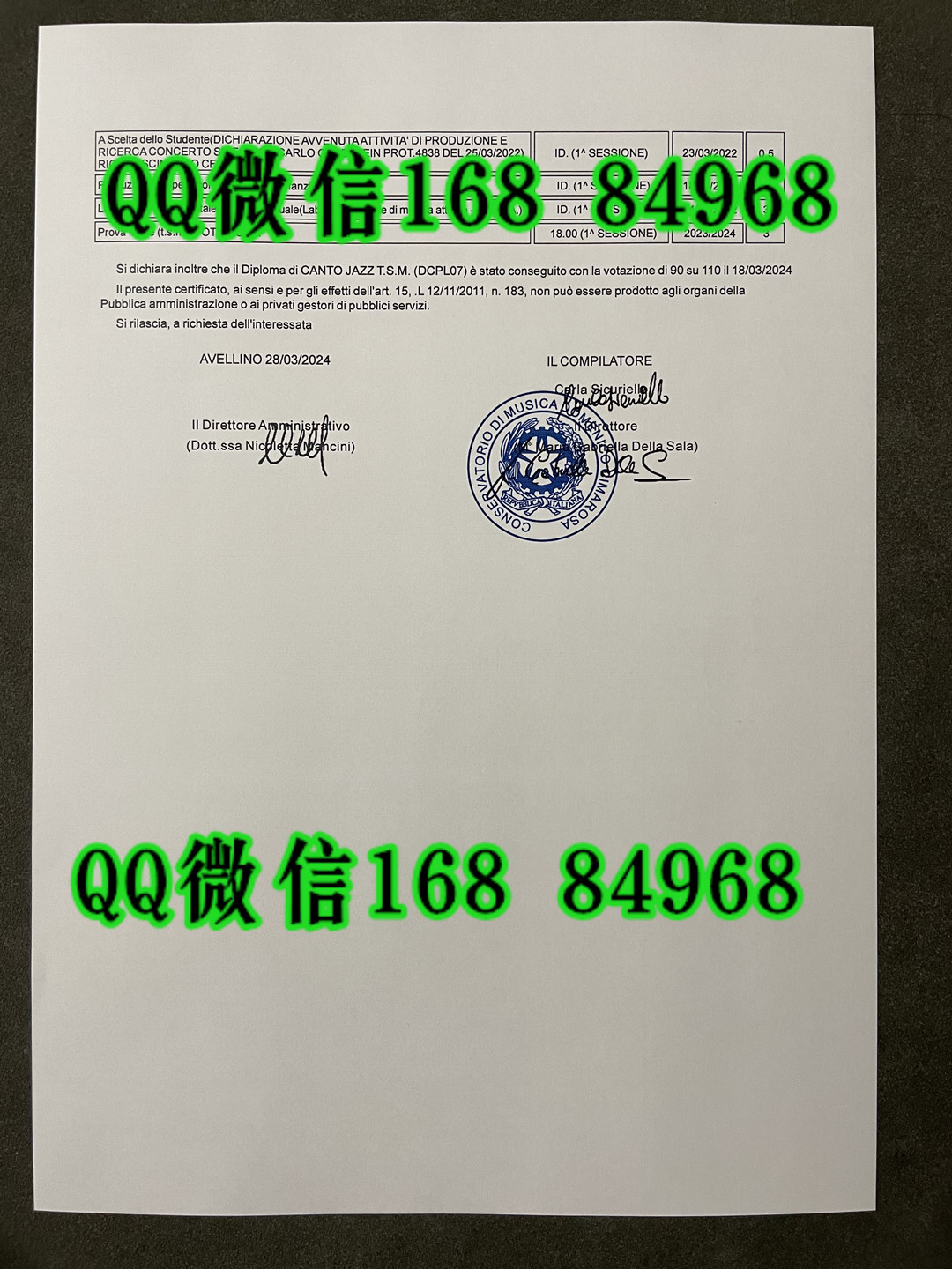 意大利阿维利诺音乐学院成绩单,Conservatorio di Musica Domenico Cimarosa transcript