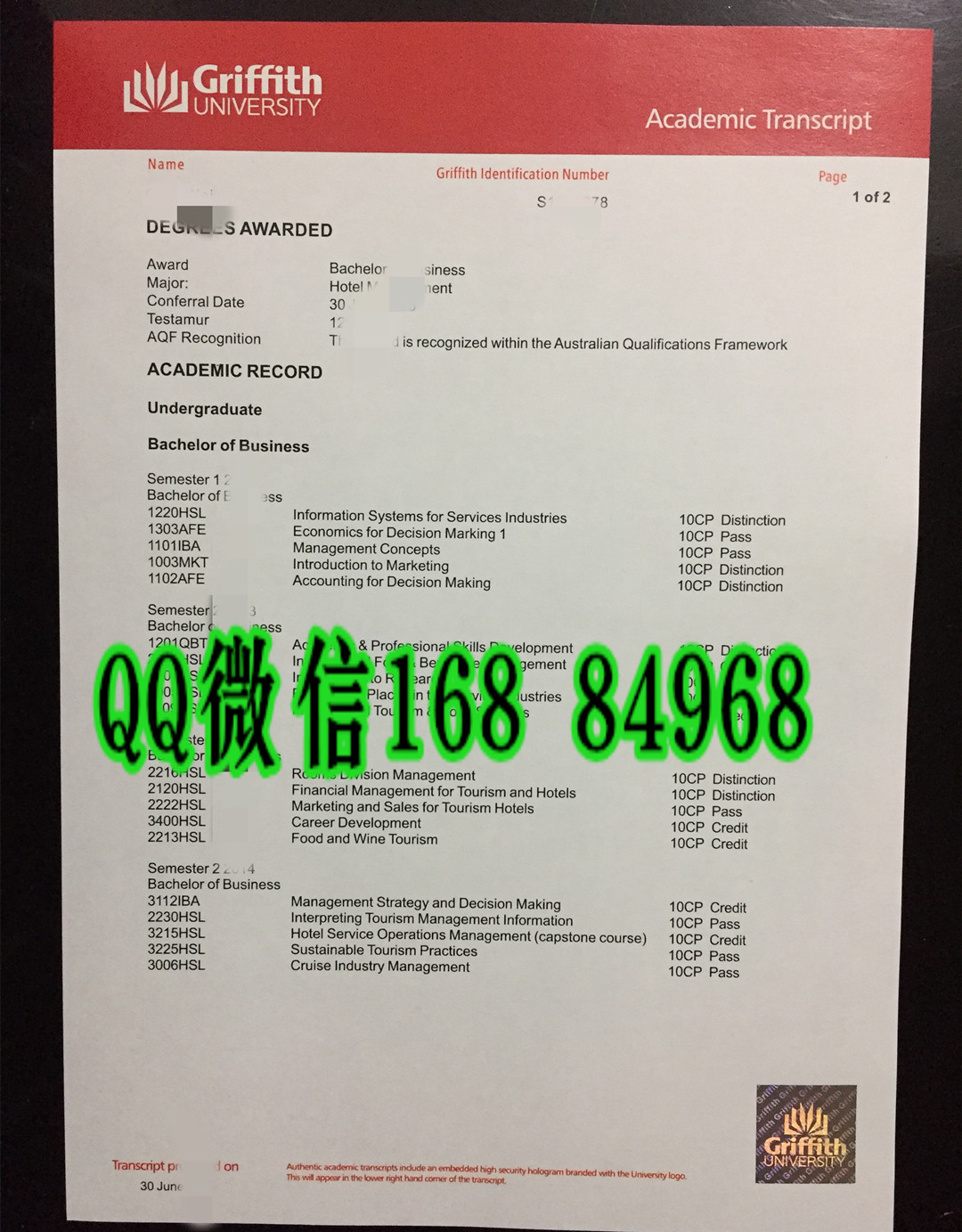 澳大利亚西海岸大学成绩单,West Coast University transcript