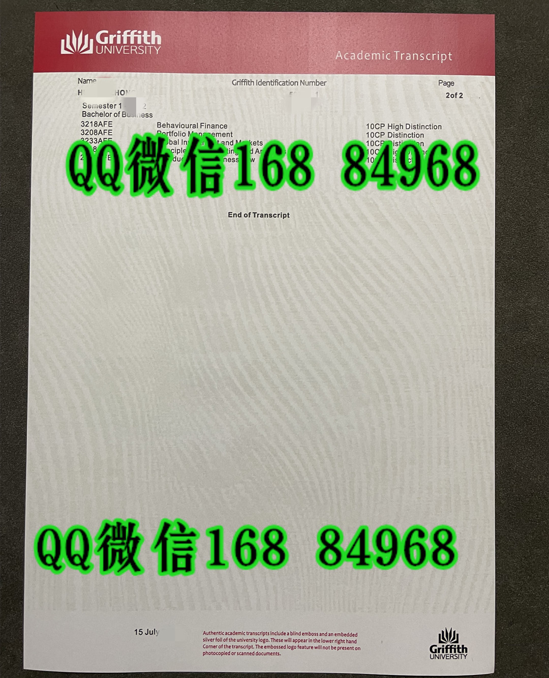 澳洲格里菲斯大学成绩单,Griffith University transcript