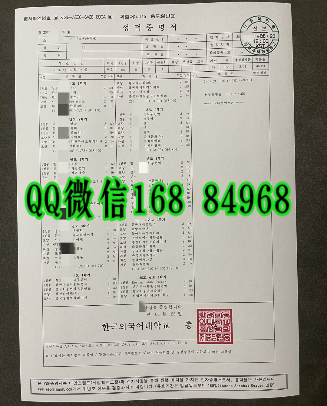 韩国外国语大学成绩单实拍,Hankuk University of Foreign Studies transcript