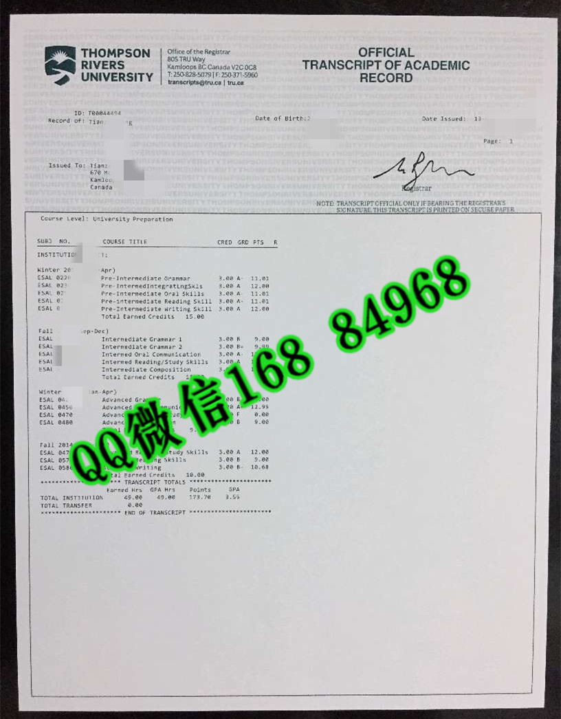 加拿大汤姆森河大学成绩单制作,thompson rivers university transcript