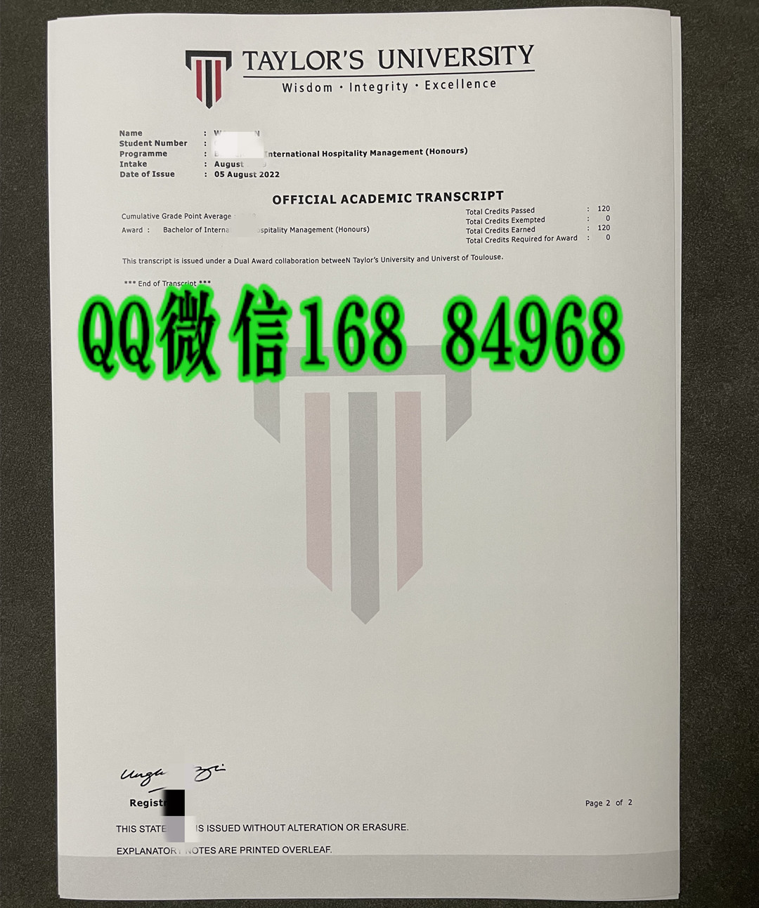 马来西亚泰莱大学Taylor's University成绩单,Taylor's University transcript