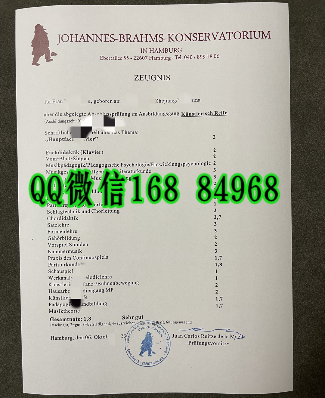德国勃拉姆斯音乐学院毕业证成绩单留信网认证,德国大学文凭样本