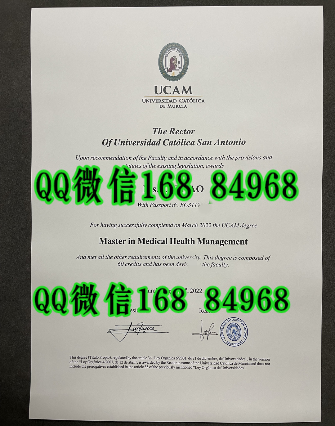 西班牙武康大学毕业证学位证,西班牙武康大学UCAM毕业证书