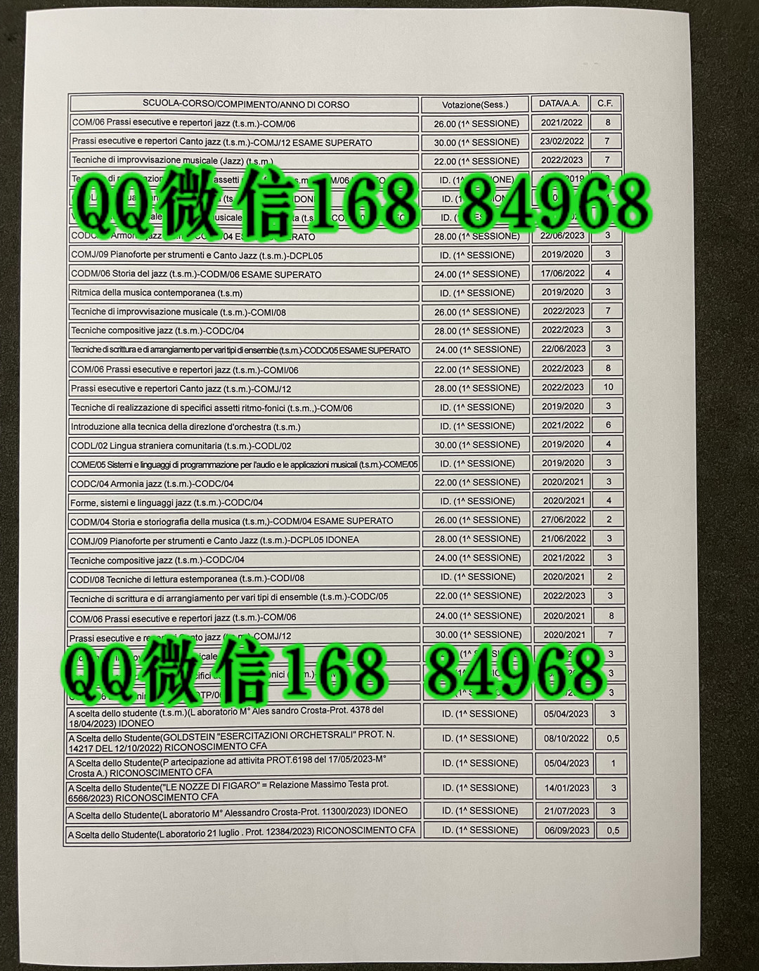 意大利阿维利诺音乐学院成绩单,Conservatorio di Musica Domenico Cimarosa transcript