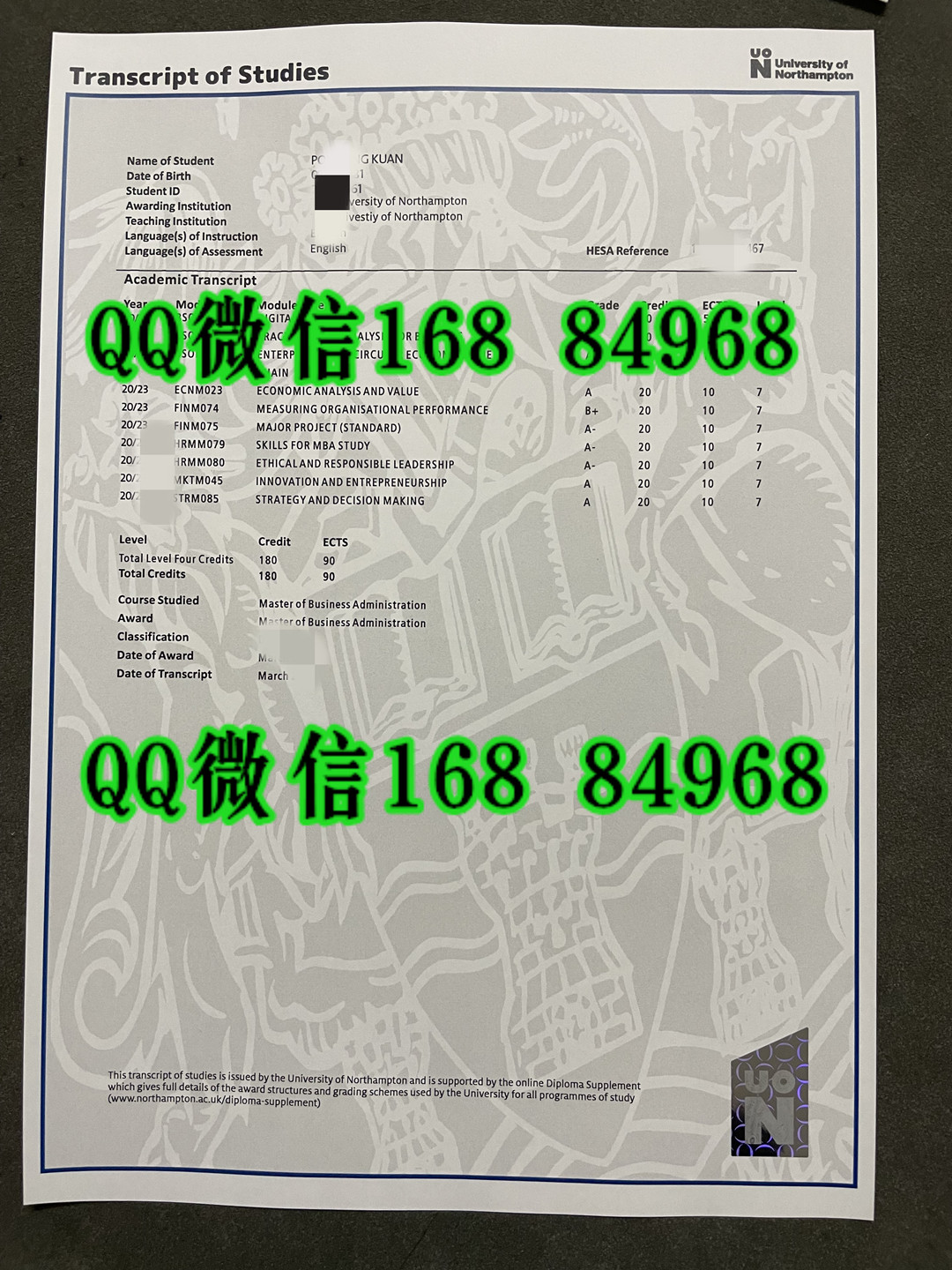 定制英国北安普顿大学成绩单,The University of Northampton transcript